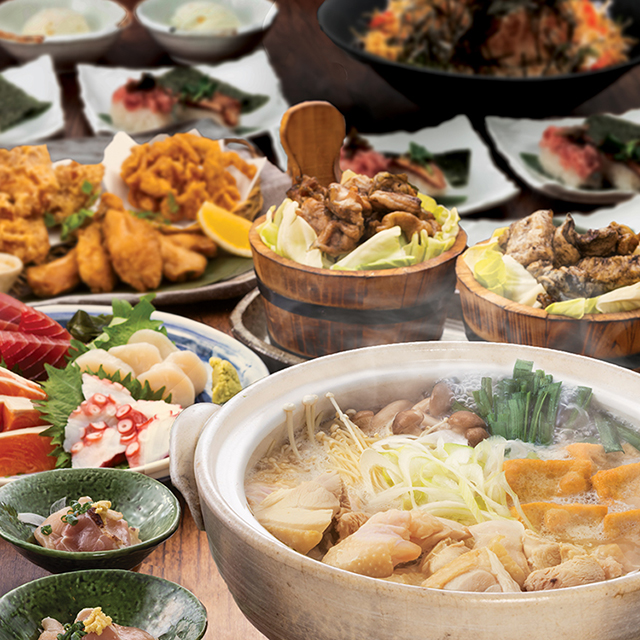 て鶏あし鶏のご宴会コースは、こだわりの鶏料理からおでんまで、旬の食材を取り入れた自慢のコースを取り揃えております。下記コース以外にも各店でのオリジナルコースもございますので、直接店舗にお問い合わせくださいませ。