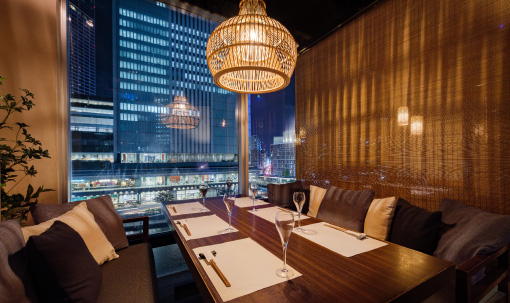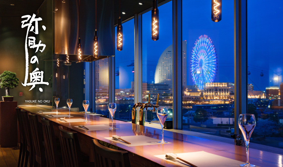 「札幌弥助」の店内を通りすぎた”奥”にある、隠れ家のような店内は桜木町の夜景を望むラグジュアリーな空間が広がります。 一つひとつ丁寧に揚げた天麩羅と、種類豊富に取り揃えた日本酒をご用意して、皆さまをお迎えいたします。